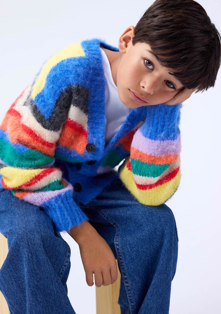 Wrap your little one in the ultimate cool-factor with our Brutus Cardigan! This fuzzy striped wonder features an eye-catching assortment of colors that'll make playground fashion statements. Super soft, totally unisex, and designed for kids who march to their own beat. Perfect for layering and guaranteed to spark "where'd you get that?" conversations!