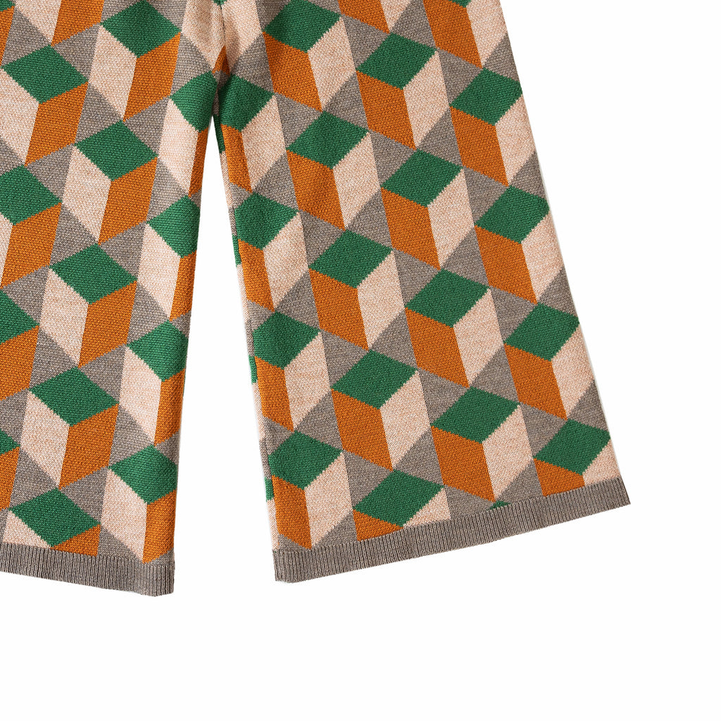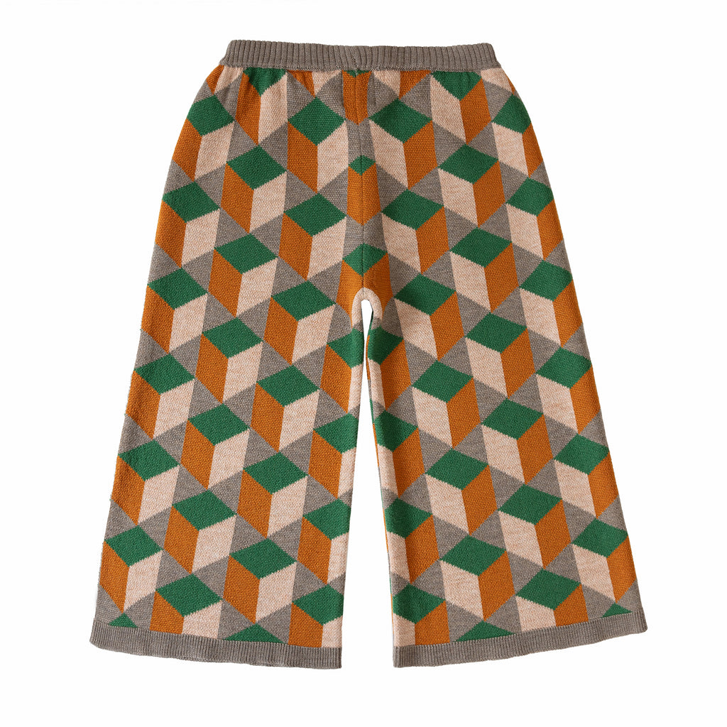 These Cuboid Trousers bring fun and comfort to your little one’s wardrobe with their playful geometric pattern. Made from soft knit fabric, these ankle-length pants are perfect for active kids who love to move freely while staying cozy. Their lightweight and stretchy material makes them ideal for playtime adventures and everyday wear.