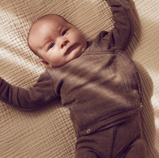 Keep your little one snug and stylish in the Wooly Rib Set, crafted from cozy ribbed merino wool in a warm walnut brown shade. This neutral, soft set gently wraps your baby in breathable warmth, perfect for playtime adventures or peaceful naps. Designed to move with your baby, it’s the ultimate blend of comfort and cuteness.
