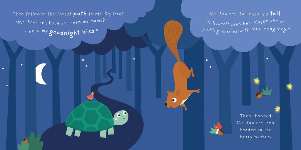 Visit all the animals with Theo as he goes in search of his goodnight kiss!